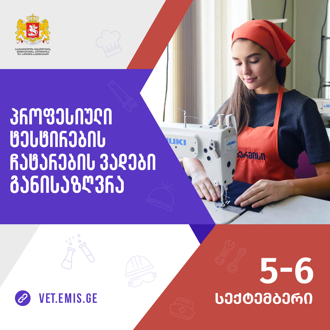 პროფესიული განათლების მიღების მსურველ პირთა პროფესიული ტესტირება 2020 წლის 5-6 სექტემბერს დილის 09:00 საათიდან დაიწყება.