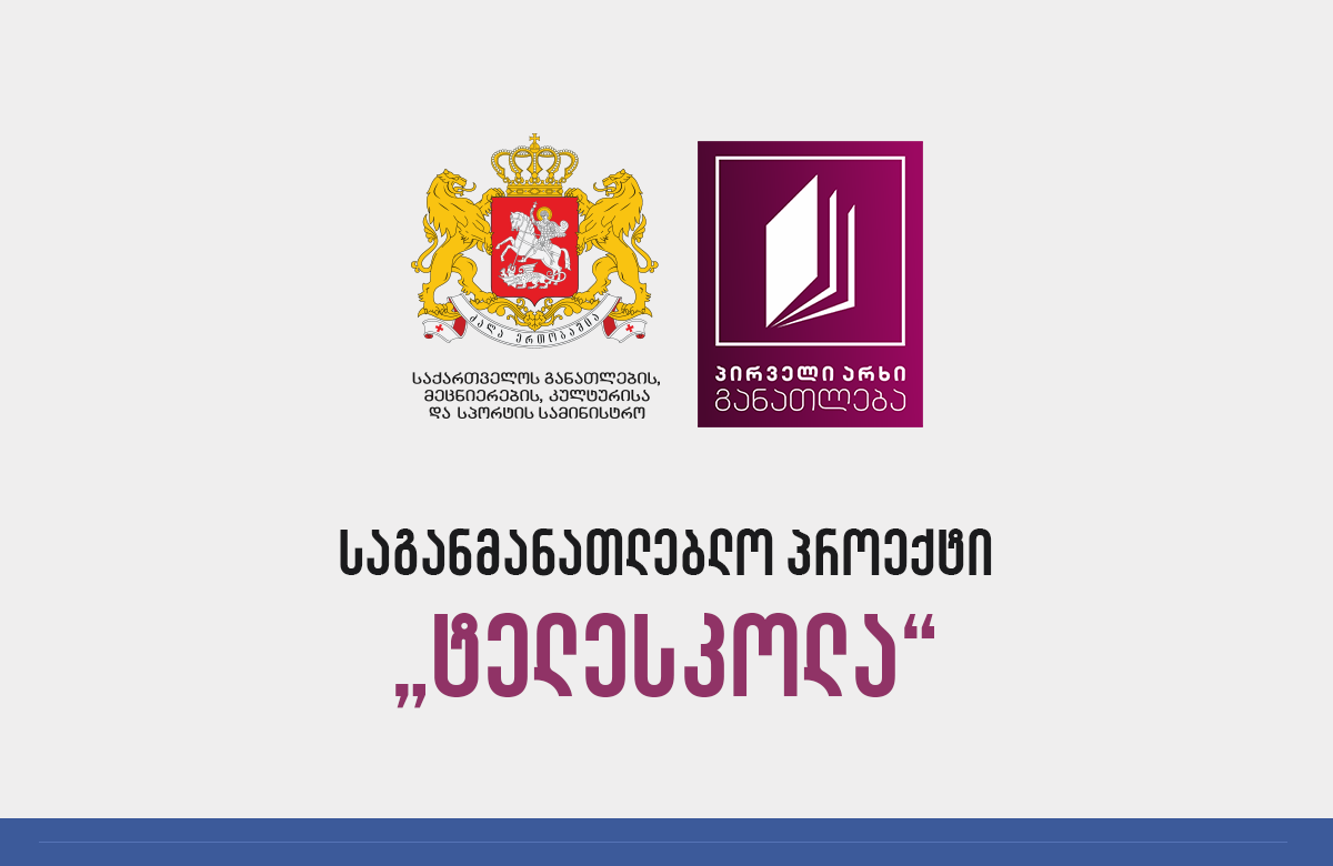 მოგეხსენებათ, კორონავირუსის პრევენციის მიზნით პრემიერ-მინისტრის ხელმძღვანელობით მოქმედი უწყებათაშორისი საკოორდინაციო საბჭოს გადაწყვეტილებით სასწავლო პროცესი გადავადდა. აღნიშნულმა საბჭომ, სწავლა-სწავლების პროცესის ხელშეწყობის მიზნით, საქართველოს განათლების, მეცნიერების, კულტურისა და სპორტის სამინისტროს დაავალა მაქსიმალურად გაზარდოს დისტანციურ სწავლებაზე ხელმისაწვდომობა. სამინისტროსა და საქართველოს პირველი არხის ერთობლივი პროექტი „ტელესკოლა“ სწორედ ამ ამოცანების შესრულებას ემსახურება.