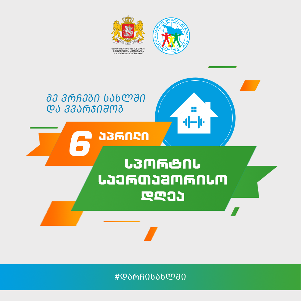 6 აპრილს, მსოფლიო სპორტის საერთაშორისო დღეს აღნიშნავს. პირველად ამ დღის აღნიშვნის ისტორიაში, საერთაშორისო ორგანიზაციის „მშვიდობა და სპორტი“ გადაწყვეტილებით, სპორტის დღისადმი მიძღვნილი ღონისძიებები და აქტივობები ონლაინ სივრცეში გადაინაცვლებს. წელს ამ ღონისძიების მთავარი მესიჯი მსოფლიო მასშტაბით იქნება „მე ვრჩები სახლში და ვვარჯიშობ“.