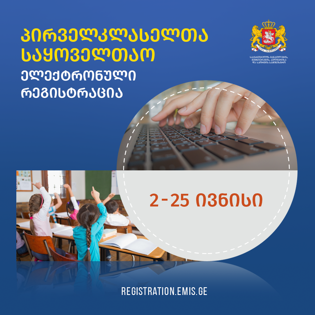 საქართველოს განათლების, მეცნიერების, კულტურისა და სპორტის სამინისტრო 2 ივნისიდან 25 ივნისის ჩათვლით პირველკლასელთა რეგისტრაციის III ეტაპს იწყებს.