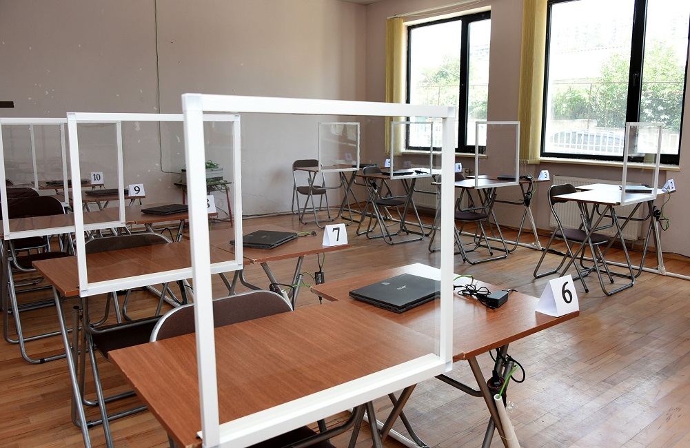 The Deputy Minister got acquainted with the preparatory works for the exams and evaluated the measures taken to ensure the safety of the exam participants. Cameras have already been installed in the examination halls and the rooms are equipped with appropriate furniture and other necessary equipment, including a thermosetting device and protective barriers.