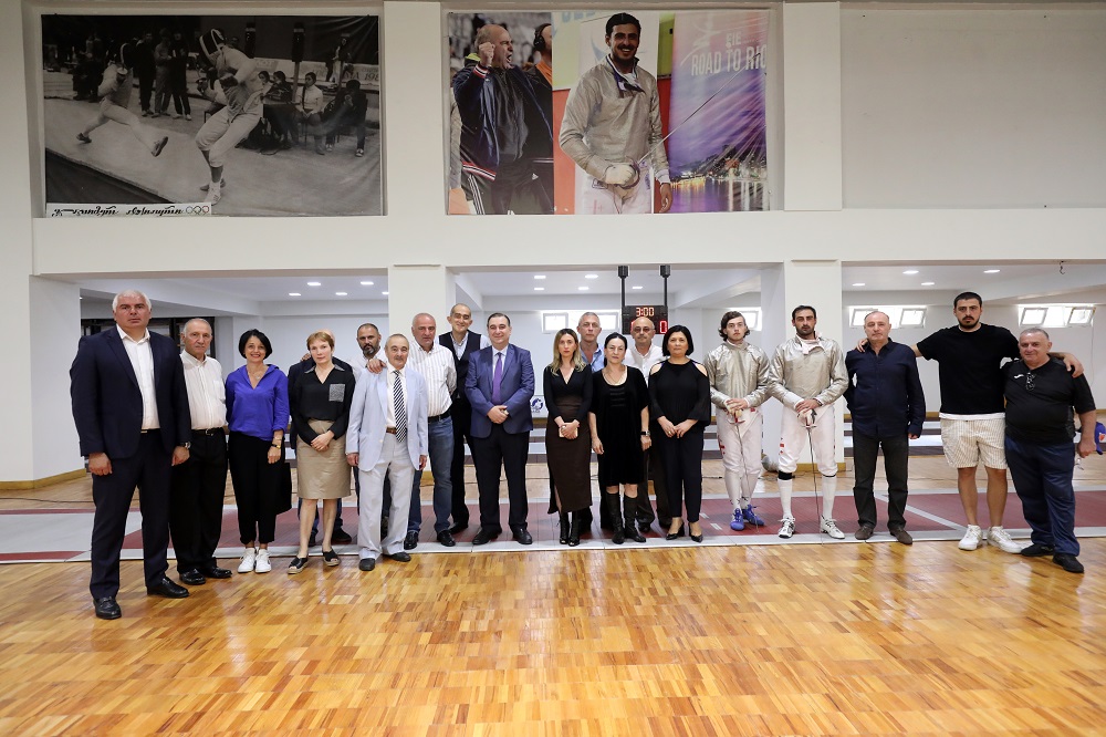 The Minister, together with Deputy Shalva Gogoladze, representatives of the Federation and veteran fencers, inspected the fully rehabilitated fencing hall and attended the demonstration training of the members of the Georgian national team.