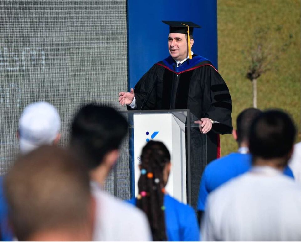 მსურს, კიდევ ერთხელ მივმართო ქუთაისის საერთაშორისო უნივერსიტეტის სტუდენტთა პირველ თაობას. გულითადად გილოცავთ ამ უნივერსიტეტის სტუდენტობას და სწავლის დაწყებას. თქვენ, უნიკალური უნივერსიტეტის პირველი ნაკადი, საქართველოს აკადემიური ისტორიის ნაწილი ხართ! ქუთაისის საერთაშორისო უნივერსიტეტში სწავლა მართლაც გამორჩეული შესაძლებლობაა, ეს არის ძალიან დიდი პატივი და დიდი პასუხისმგებლობაც. დღეს იწყება თქვენი ცხოვრების საინტერესო და წარმატებულო პერიოდი. დარწმუნებული ვარ, რომ გავა წლები და თითოეული თქვენგანი დიდი სიხარულით გაიხსენებს დღევანდელ დღეს.