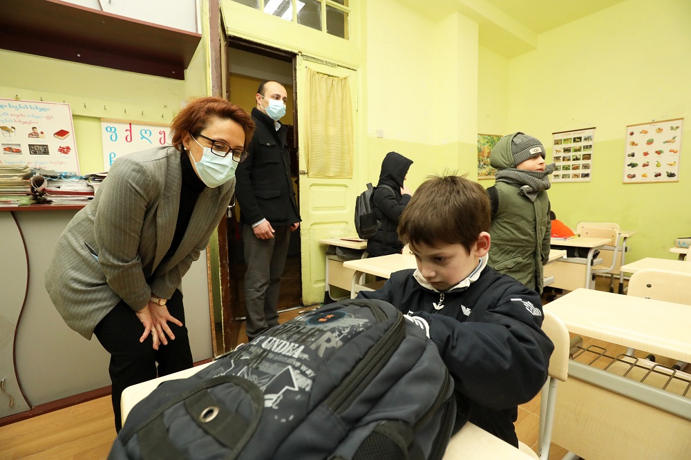 მთელი ქვეყნის მასშტაბით მოსწავლეების საკლასო ოთახებში დაბრუნებასთან დაკავშირებით მინისტრის პირველი მოადგილე სისტემატურად ეცნობა სკოლებში მიმდინარე საგაკვეთილო პროცესს და პირადად აფასებს, თუ რა ღონისძიებებია გატარებული ზოგადსაგანმანათლებლო დაწესებულებებში უსაფრთხო სასწავლო გარემოს უზრუნველყოფის მიმართულებით.