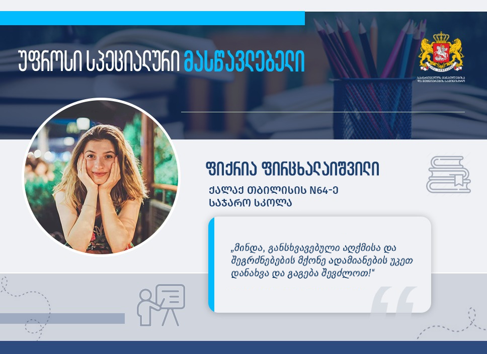 After defining the special development scheme for special education teachers and their salary policy, Pikria Pirtskhalaishvili, in accordance with her master's education, became a senior special education teacher and will receive the relevant status supplement from 2021.