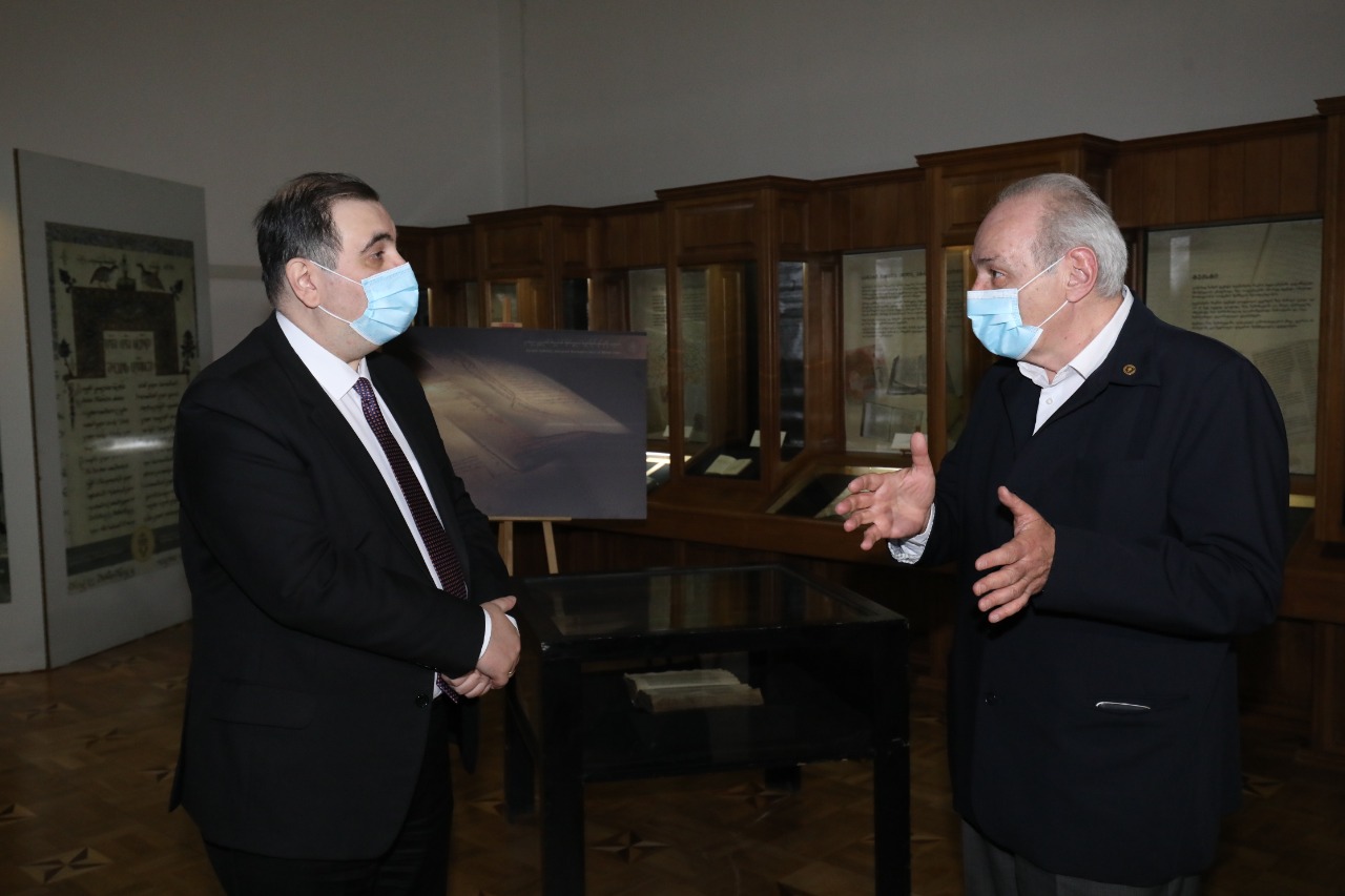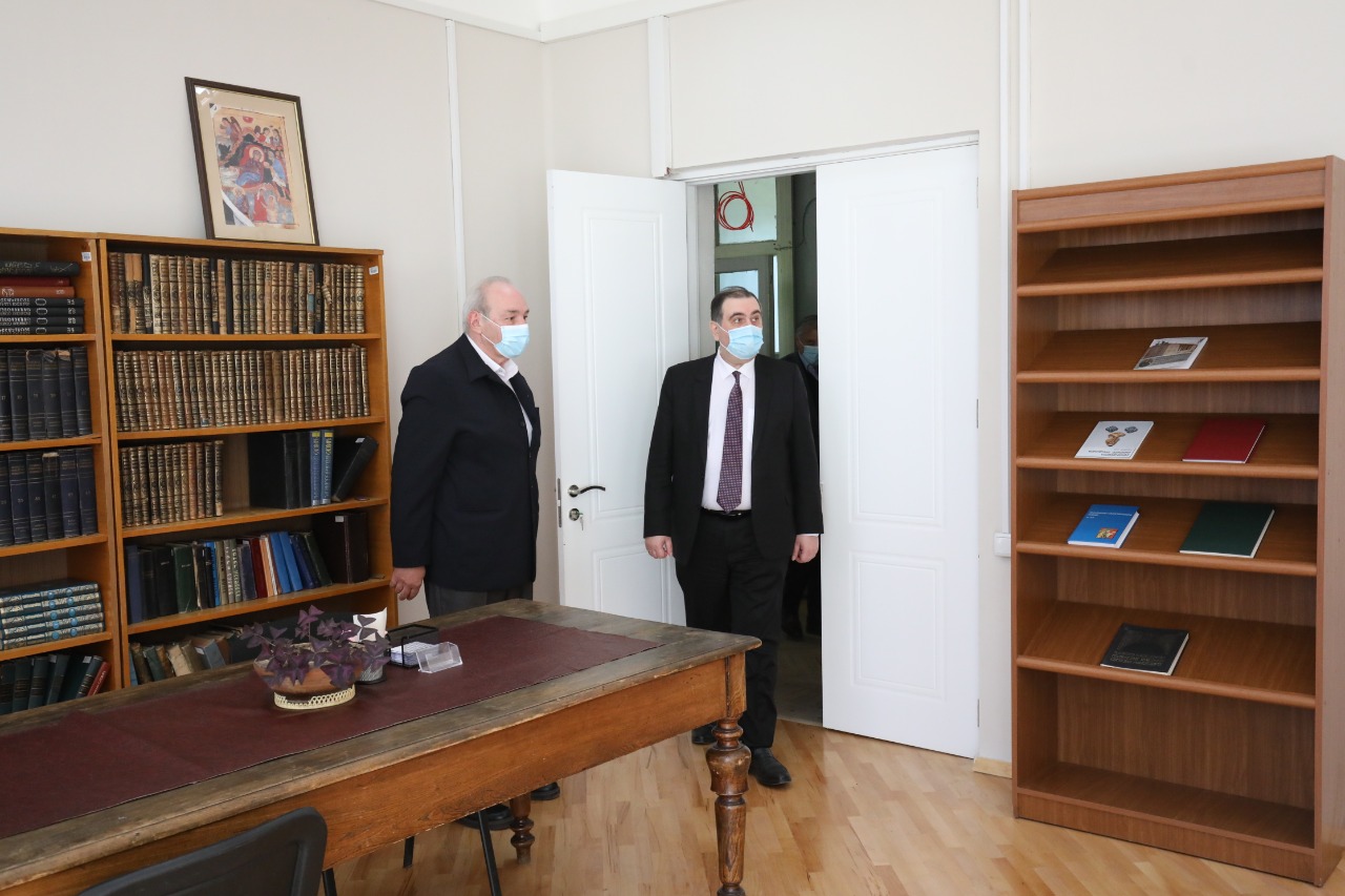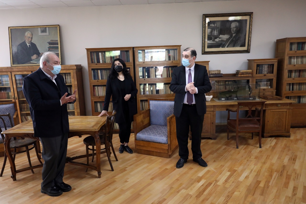 საქართველოს განათლებისა და მეცნიერების მინისტრი მიხეილ ჩხენკელი ხელნაწერთა ეროვნულ ცენტრს ეწვია და ახლად რეაბილიტირებულ საგამოფენო სივრცეში სრულიად ახალი სახით წარმოდგენილი მემორიალური კაბინეტები დაათვალიერა.