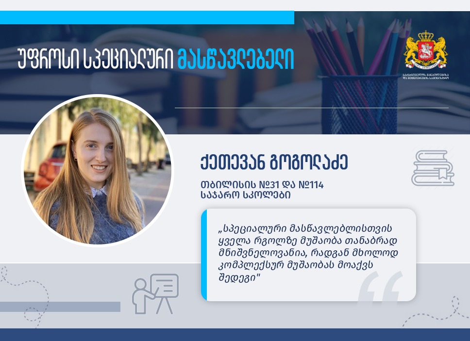მიღებული სამაგისტრო განათლება ქეთევან გოგოლაძეს დაეხმარა იმაში, რომ სპეციალური მასწავლებლის პროფესიული განვითარების სქემაში ჩაერთო და 2021 წლიდან უფროსი სპეციალური მასწავლებელი გახდა, რაც მის ანაზღაურებაზეც აისახება.