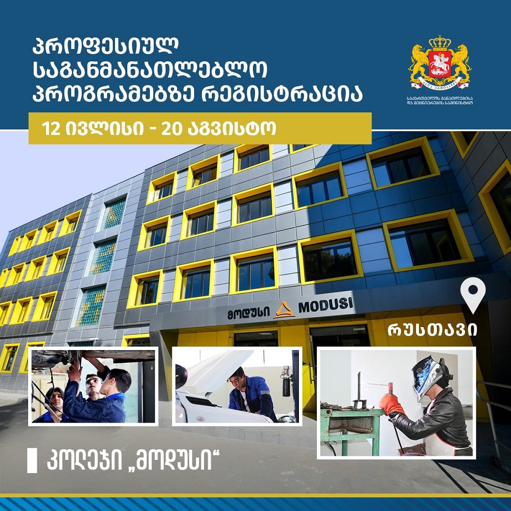 კოლეჯი „მოდუსი“ პროფესიულ საგანმანათლებლო პროგრამებზე რეგისტრაციას აგრძელებს