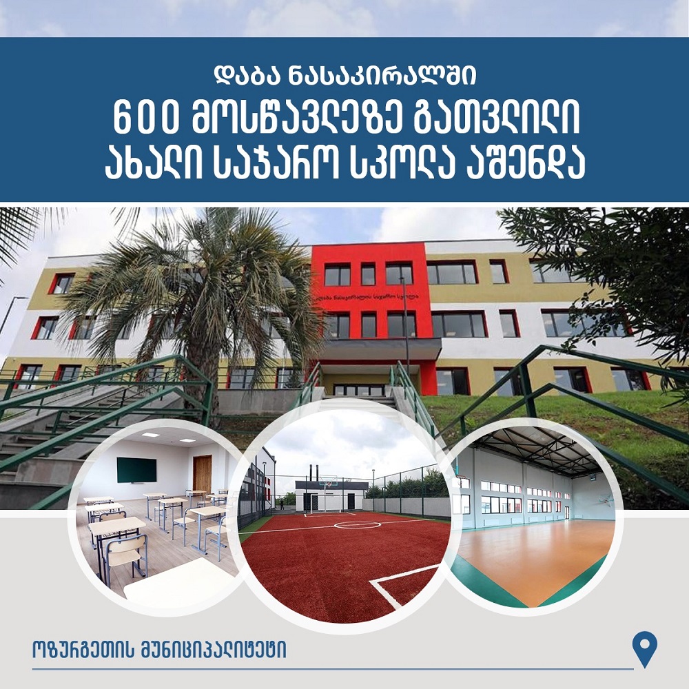 ოზურგეთის მუნიციპალიტეტის დაბა ნასაკირალში 600 მოსწავლეზე გათვლილი ახალი სკოლა აშენდა.