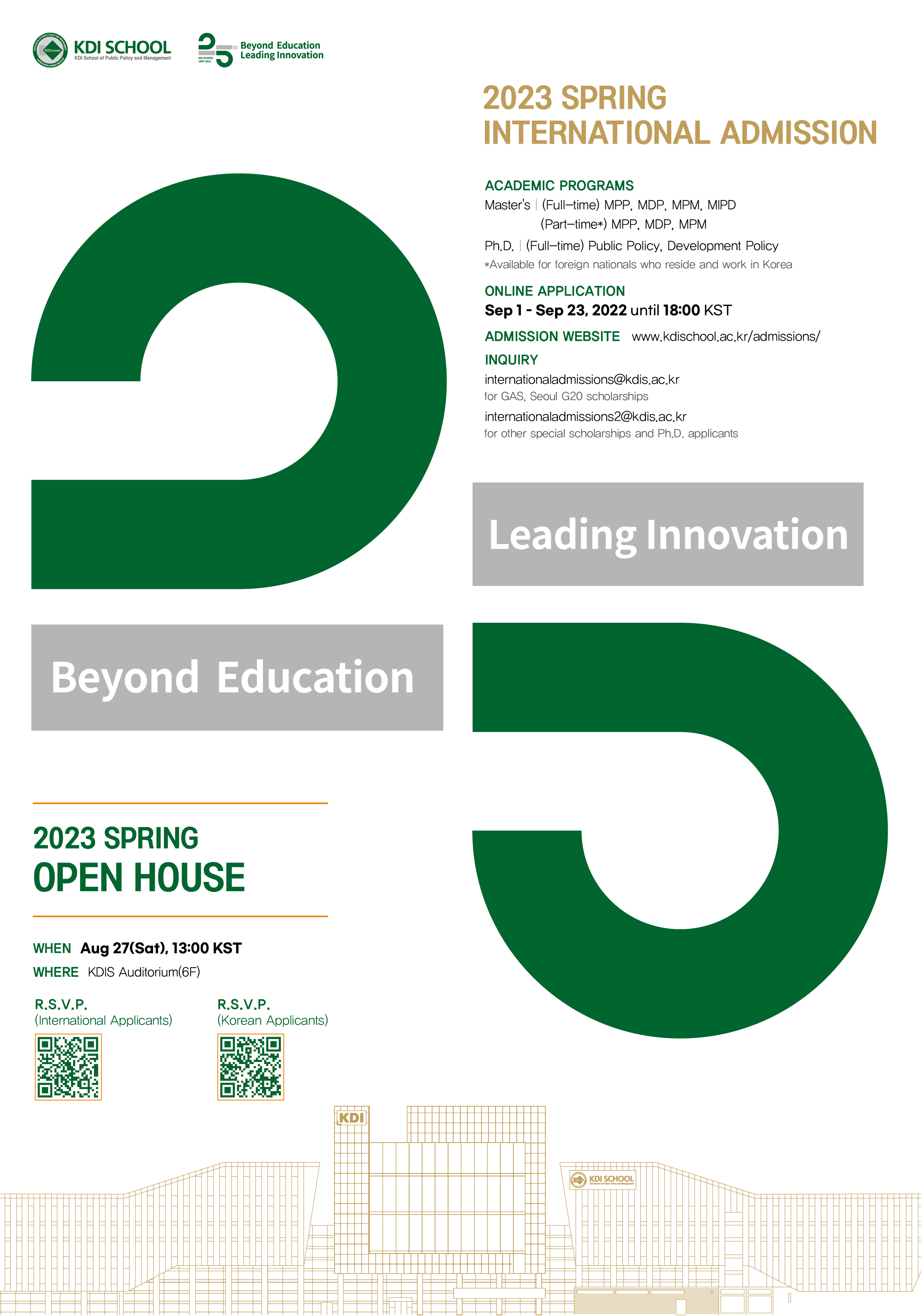 წარმოგიდგენთ ინფორმაციას კორეის განვითარების ინსტიტუტის საჯარო პოლიტიკისა და მართვის სკოლის (KDI School of Public Policy and Management) მიერ შემოთავაზებული სამაგისტრო და სადოქტორო პროგრამების შესახებ.