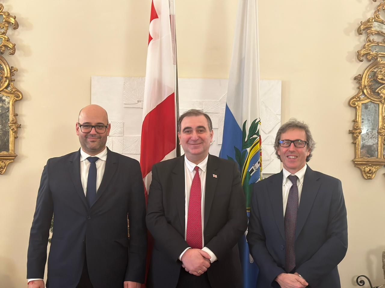საქართველოს განათლებისა და მეცნიერების მინისტრის მიხეილ ჩხენკელის სამუშაო ვიზიტი სან მარინოს რესპუბლიკაში გრძელდება. მინისტრმა მორიგი შეხვედრა გამართა სან მარინოს რესპუბლიკის განათლების, კულტურის, ახალგაზრდული პოლიტიკის, საუნივერსიტეტო და სამეცნიერო კვლევების მინისტრ ანდრეა ბელუცისთან და სან მარინოს რესპუბლიკის ჯანდაცვის, სოციალური უზრუნველყოფის, კეთილდღეობისა და სოციალური დაცვის, პოლიტიკური საკითხების, თანაბარი შესაძლებლობებისა და ტექნოლოგიური ინოვაციების მინისტრ რობერტო ჩიავატასთან.