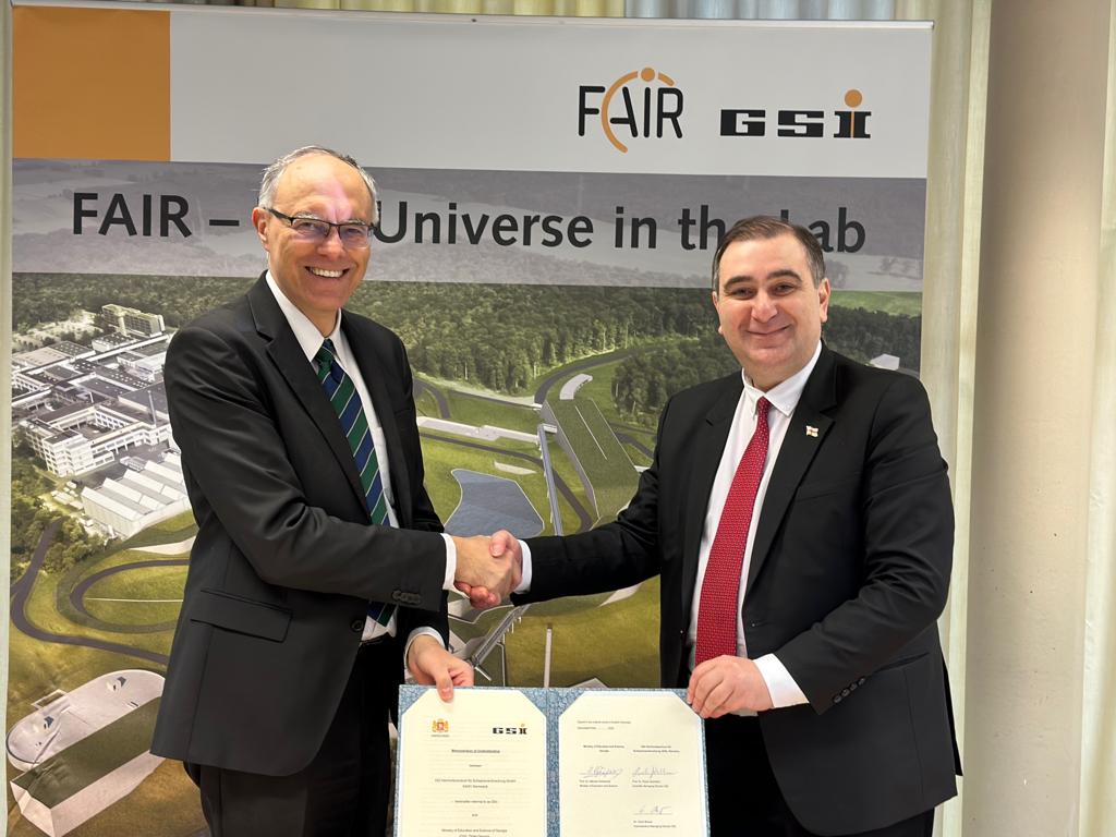 საქართველოს განათლებისა და მეცნიერების სამინისტროსა და GSI ჰელმჰოლცის მძიმე იონების კვლევით ცენტრს (GSI Helmholtzzentrum für Schwerionenforschung) შორის თანამშრომლობა იწყება – შესაბამის მემორანდუმს ხელი საქართველოს განათლებისა და მეცნიერების მინისტრმა მიხეილ ჩხენკელმა და GSI ჰელმჰოლცის მძიმე იონების კვლევითი ცენტრის სამეცნიერო დირექტორმა პაოლო ჯუბელინომ ფრანკფურტში მოაწერეს.