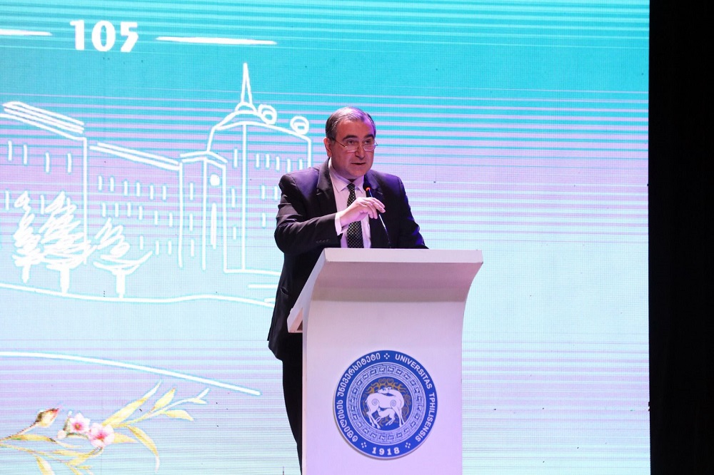 წელს უნივერსიტეტის საიუბილეო თარიღთან დაკავშირებით არაერთი მნიშვნელოვანი საგანმანათლებლო, შემეცნებითი და სამეცნიერო აქტივობა განხორციელდა. ჩემთვის განსაკუთრებით საამაყოა, რომ დღეს ნაყოფიერი სამეცნიერო და პედაგოგიური საქმიანობისთვის საპატიო ჯილდოებს გადავცემთ უნივერსიტეტის გამორჩეულ პროფესორებს. მსგავსი ინიციატივებისა და იდეების განხორციელება აუცილებელია, რადგან ქართველი მეცნიერების დაფასება და ახალგაზრდებში სამეცნიერო-კვლევითი საქმიანობის პოპულარიზაციის ხელშეწყობა მართლაც ძალიან მნიშვნელოვანია.