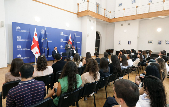 Giorgi Amilakhvari, the Minister of Education, Science, and Youth Affairs of Georgia, held a meeting with young individuals participating in the ministry's internship program. Approximately 100 young people, who successfully passed an interview and expressed their interest in interning at state agencies, are currently undergoing a four-month paid internship at the Ministry of Education, Science, and Youth.