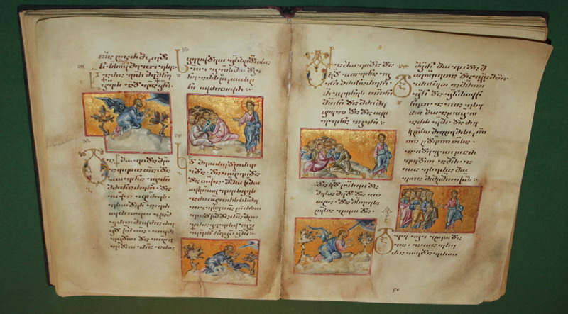 ხელნაწერი XIII-XIV საუკუნეებისთვის უჩვეულო მინიატურების სიუხვითაც გამოირჩევა. ხელნაწერის მხატვრულ თავისებურებას ფურცლოვან ოქროზე შესრულებული მინიატურები წარმოადგენს. სახარების მხატვრულ სახეს 155 მინიატურა, 10 კამარა და 530-მდე საზედაო ასო და ინიციალი განსაზღვრავს, რაც პალეოლოგოსური ხელოვნების საუკეთესო ნიმუშია ქრისტიანულ ტრადიციულ კულტურაში.