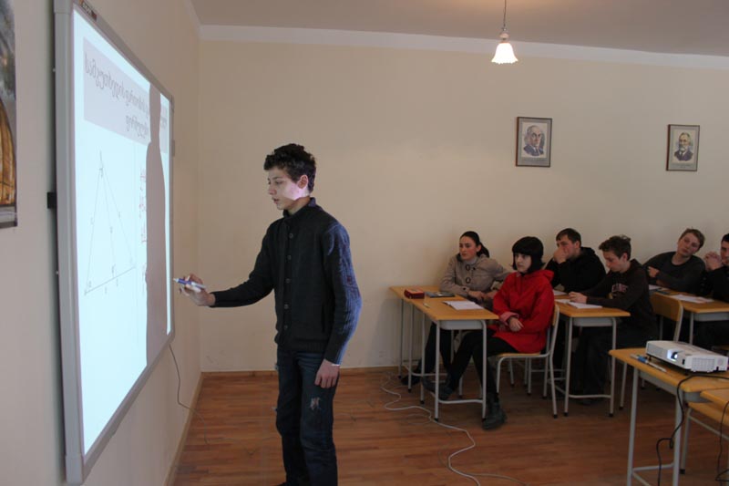 Holding the lessons with the use of the “Smart Board” continues. This time, model lesson in Mathematics was organized for the schoolchildren of Kutaisi Andria Razmadze Physical- Mathematical School. The lesson was attended by the Deputy Minister of Education and Science of Georgia Irine Kurdadze and the Deputy Governor of Imereti Region Giorgi Shushania.