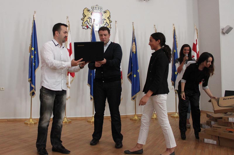 Minister Dimitri Shashkini and Mayor of Tbilisi Gigi Ugulava presented Lenovo personal computers to 200 tenth graders of Tbilisi public schools. These schoolchildren were awarded for their successful performance at the basic level of education.