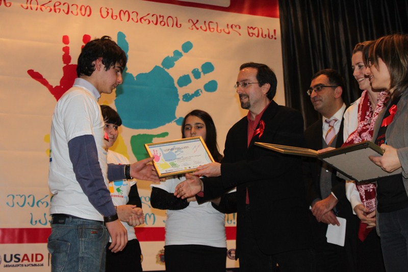 Deputy Minister Nodar Surguladze participated in an event marked as part of World AIDs day, awarded the winners of the project Choice on You, and presented the participating school principals and teachers with special prizes and certificates.