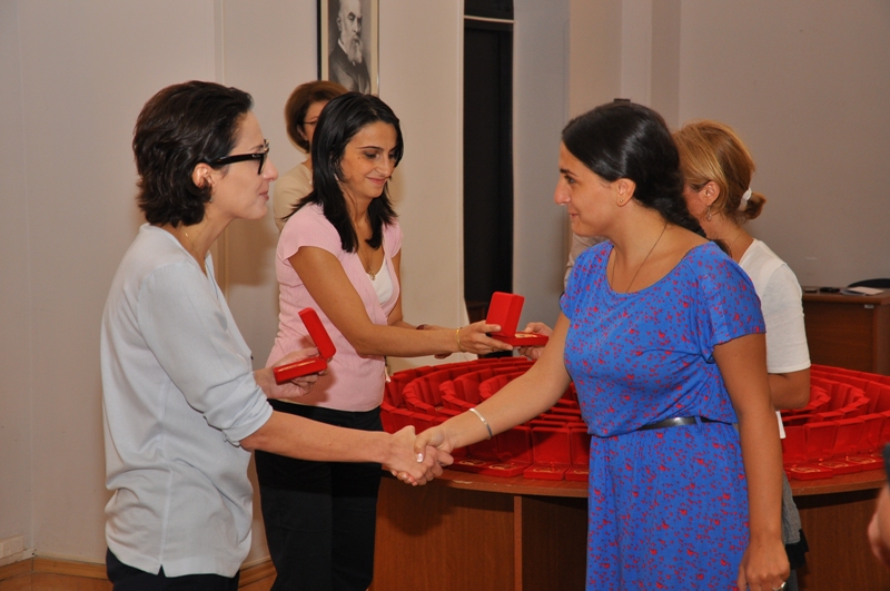 The Georgian president’s “Supporting Gifted and Talented Youth program” continues with the Ministry of Education and Science passing out gold and silver medals to excellent school-graduates. In 2012, 780 gold and 1041 silver medals will be given to graduates throughout Georgia, with the highest proportion of medal recipients from Tbilisi, Imereti and Adjara. Today, Education and Science Minister Khatia Dekanoidze personally awarded 300 more graduates gold medals and wished them much success in the future.
