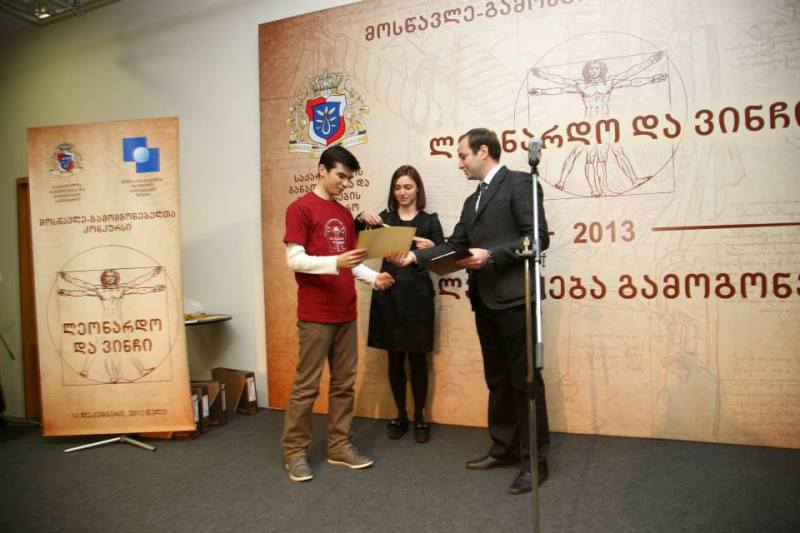 Competition “Leonardo Da Vinchi” has been organized by the Ministry of Education and Science and Shota Rustaveli National Science Foundation since 2011. The competition aims at increasing interest towards innovations and progress, promotion of creative and talented children. Pupils under 18 are eligible to participate in the competition.