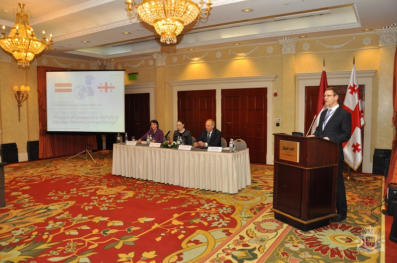 მრგვალი მაგიდის ფორმატში, ლატვიის რესპუბლიკის პრეზიდენტი ანდრის ბერზინში, განათლებისა და მეცნიერების მინისტრი მარტე სეილე და საქართველოს განათლებისა და მეცნიერების მინისტრის პირველი მოადგილე ქეთევან ნატრიაშვილი ლატვიისა და საქართველოს უმაღლესი სასწავლო დაწესებულებათა წარმომადგენლებს შეხვდნენ და მათ მიერ წარმოდგენილ პრეზენტაციებს გაეცნენ.