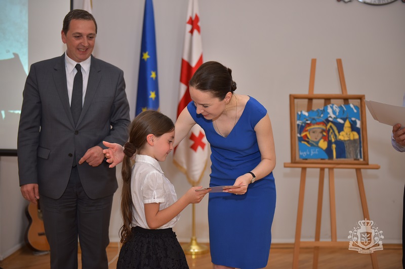 In essay contest the commission named top ten and those from it who got I, II, III places. They were awarded 200, 150, 100 GEL book-shop gift cards respectively. Those who got IV-X places were given diplomas.