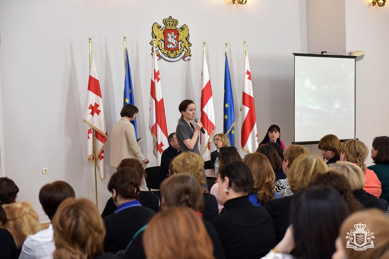 A meeting was held at the Ministry of Education and Science for Tbilisi and Rustavi public school teachers. The meeting aimed to launch the activities for teachers, for their professional development and career advancement. There was a self-assessment questionnaire for teachers with the special emphasis on the analysis.