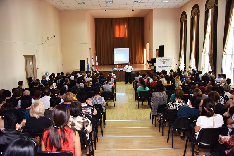 The minister spoke about the important issues of general education, future plans and initiatives. At the end of the meeting Aleksandre Jejelava answered the questions from the teachers.