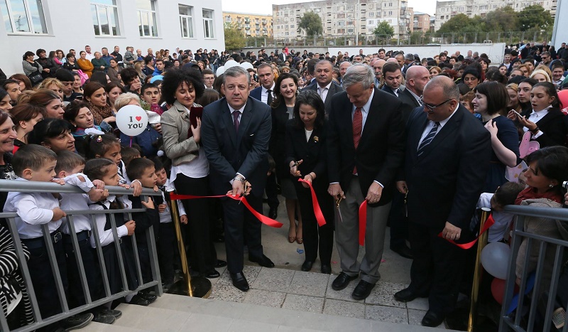 700 მოსწავლე გორში, სწავლას თანამედროვე სტანდარტების საჯარო სკოლაში განაგრძობს, - გორის რეაბილიტირებული #5 საჯარო სკოლა საქართველოს პრემიერ-მინისტრმა გიორგი კვირიკაშვილმა, დღეს, განათლებისა და მეცნიერების მინისტრ ალექსანდრე ჯეჯელავასთან, აშშ-ის ელჩ იან კელისთან და ათასწლეულის გამოწვევის კორპორაციის აღმასრულებელი დირექტორის მოადგილე ნენსი ლისთან ერთად გახსნა.
