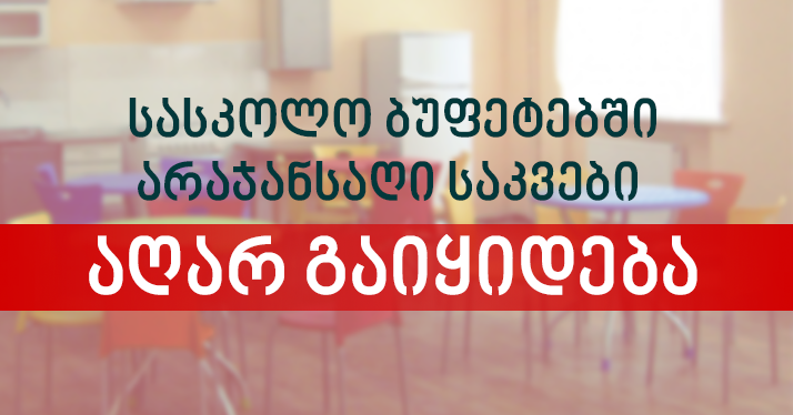 The Ministry of Education and Science of Georgia starts improvement of the situation existing in school canteens and regulation of this field - the problem has not been solved for many years in this regard. According to the specialists, unhealthy food products are available for schoolchildren in the school canteens, threatening the health of the young people.