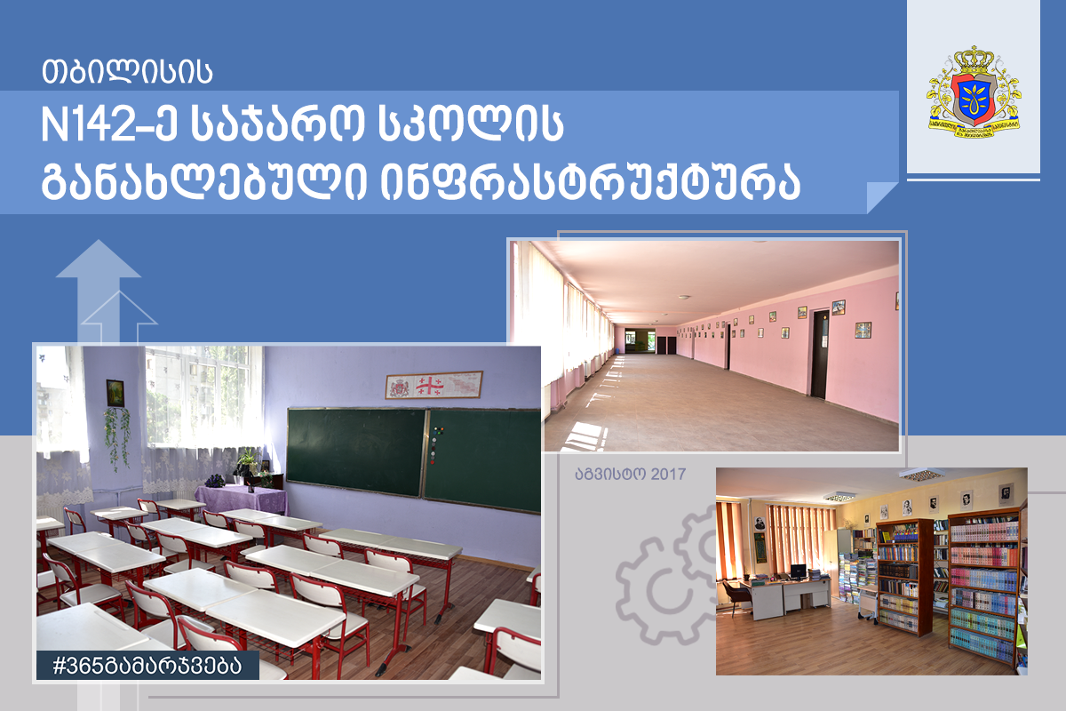 თბილისის 142-ე საჯარო სკოლაში 1215 მოსწავლე ორ ცვლაში სწავლობს. 2015-16 სასწავლო წელისთვის სკოლაში გარემონტდა ბიბლიოთეკა, პირველი და მეორე სართულის დერეფნები, კლასები და კლსკაბინეტები, ხოლო მიმდინარე ზაფხულს მესამე და მეოთხე სართულის დერეფნები და ყველა საკლასო ოთახი, კაპიტალურად გარემონტდა სველი წერტილები. ამ ეტაპზე მიმდინარეობს ექიმის კაბინეტის რემონტი.