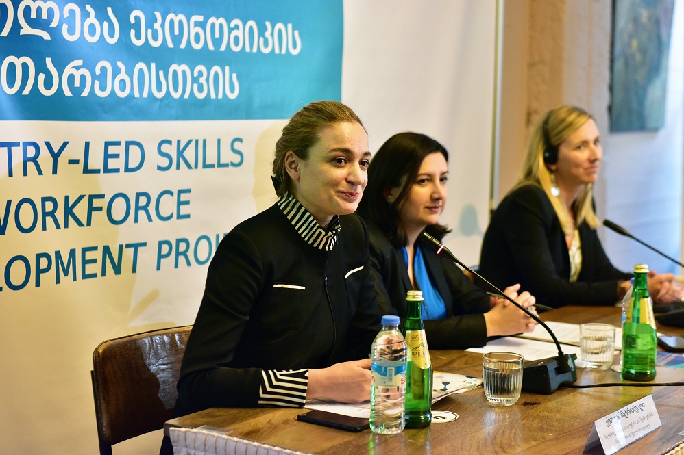First Deputy Minister of Education and Science of Georgia - Ketevan Natriashvili, Executive Director of Millennium Challenge Fund - Magda Maghradze and the Director of the Millennium Challenge Corporation Georgia - Jener Edelman, conducted a summary conference on the technical assistance for the Millennium Challenge project - Professional Education for Economic Development.