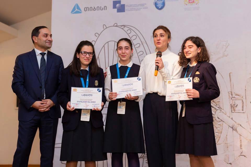 საქპატენტი-ინტელექტუალური საკუთრების ეროვნული ცენტრის თავჯდომარის მოადგილემ მერაბ კუციამ პროექტის „უნივერსალური მოწყობილობა უსინათლოთათვის“ ავტორებს მილანა გაგულიას, მარიამ ბახტაძესა და ანა კალანდარიშვილს გადასცა 1000 ლარიანი სასაჩუქრე ვაუჩერი.