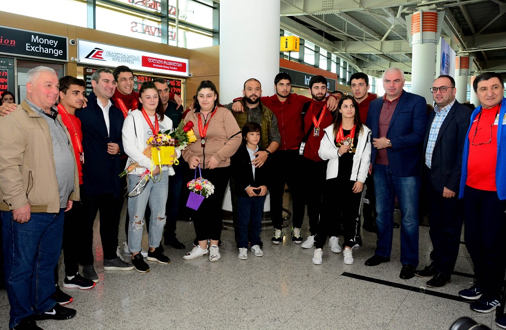 მსოფლიო პირველობის ტრიუმფატორებს თბილისის საერთაშორისო აეროპორტში საზეიმოდ დახვდნენ. ძიუდოისტებს გამარჯვება გულშემატკივრებთან ერთად, განათლების, მეცნიერების, კულტურისა და სპორტის მინისტრის მოადგილე შალვა გოგოლაძემ, სპორტის დეპარტამენტის უფროსმა ირაკლი დოლაბერიძემ და ძიუდოს ფედერაციის პრეზიდენტმა გიორგი ათაბეგაშვილმა მიულოცეს.