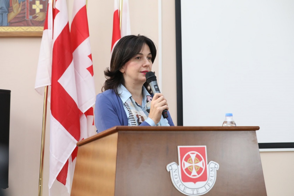 Deputy Minister of Education, Science, Culture and Sport of Georgia - Nunu Mitskevichi attended the event dedicated to the 80th anniversary of Academician - Roin Metreveli, addressed the public and congratulated the scientist with the magnificent jubilee.
