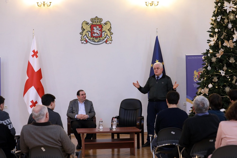 The Minister of Education, Culture and Sport of Georgia - Mikheil Chkhenkeli met with the students and their teachers who returned from the 16th International Mathematics, Physics and Informatics Olympiad and congratulated them on the victory. The event was also attended by the Chairman of the Committee on Education, Science and Culture of the Parliament of Georgia - Genadi Margvelashvili.
