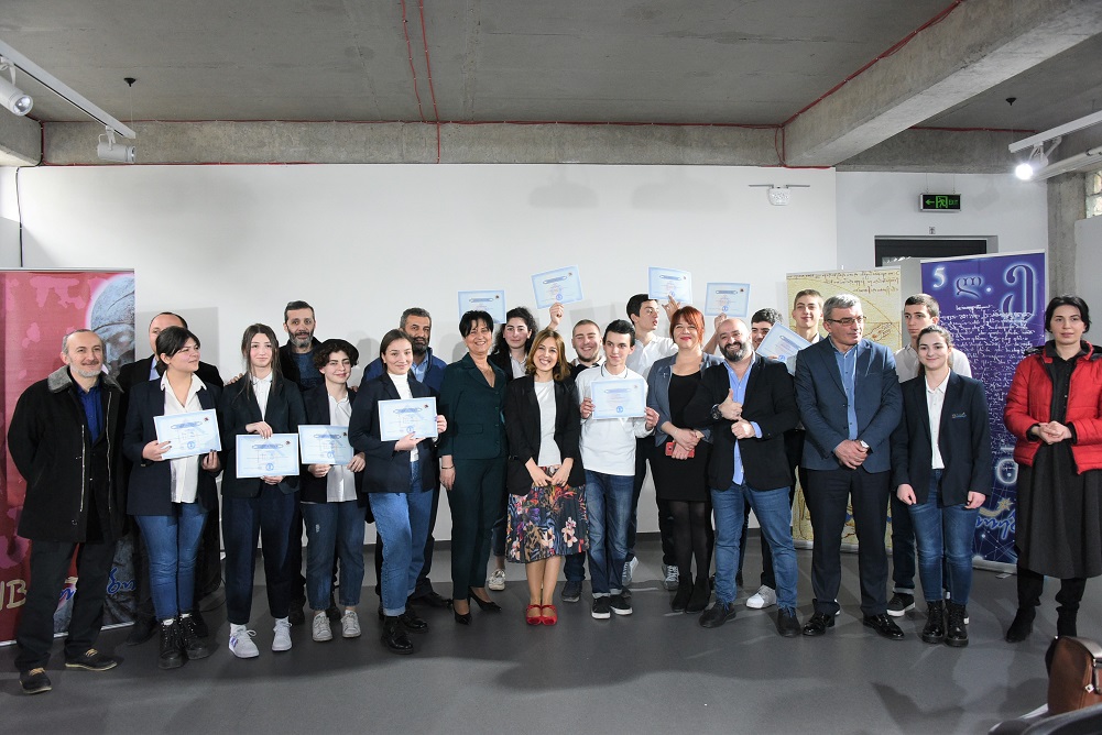 A documentary video made during the training session was presented at the reporting event held on the premises of Aibi Mtiebi. After the demonstration, the Deputy Minister of Education, Science, Culture and Sport of Georgia, Tamar Kitiashvili, presented the students with certificates of participation in the project.